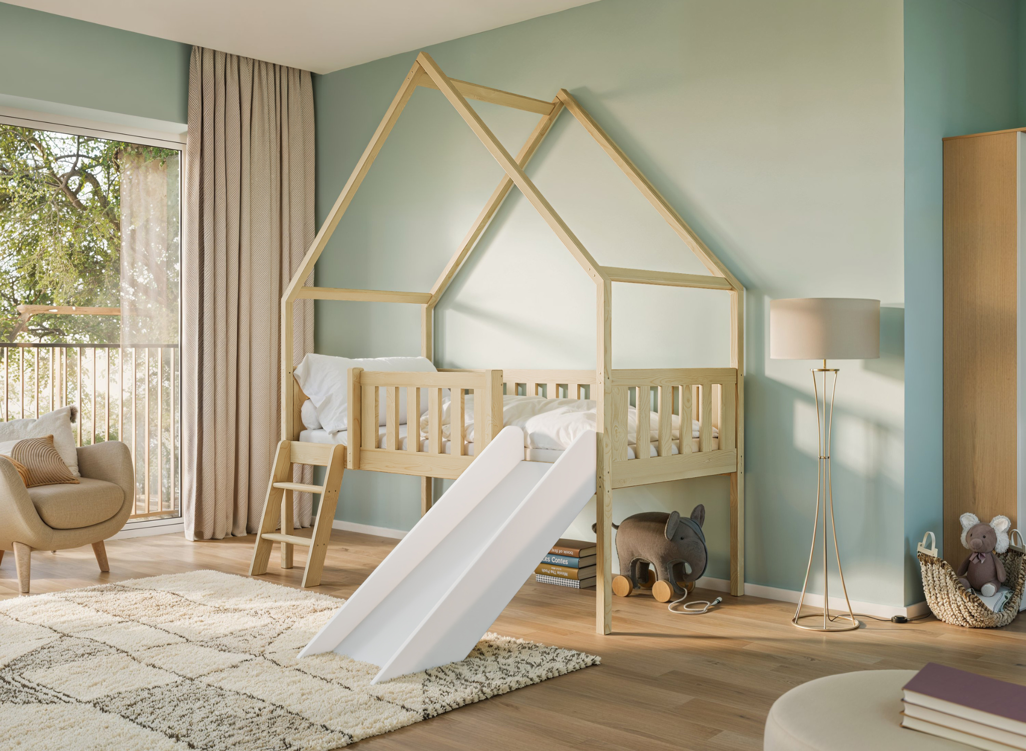Objevte dětskou postel domeček se skluzavkou ANGEL