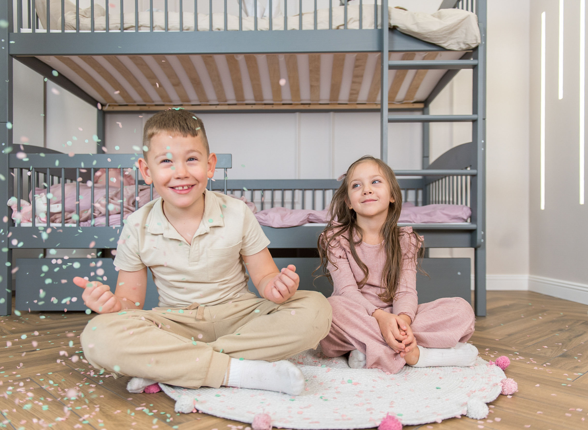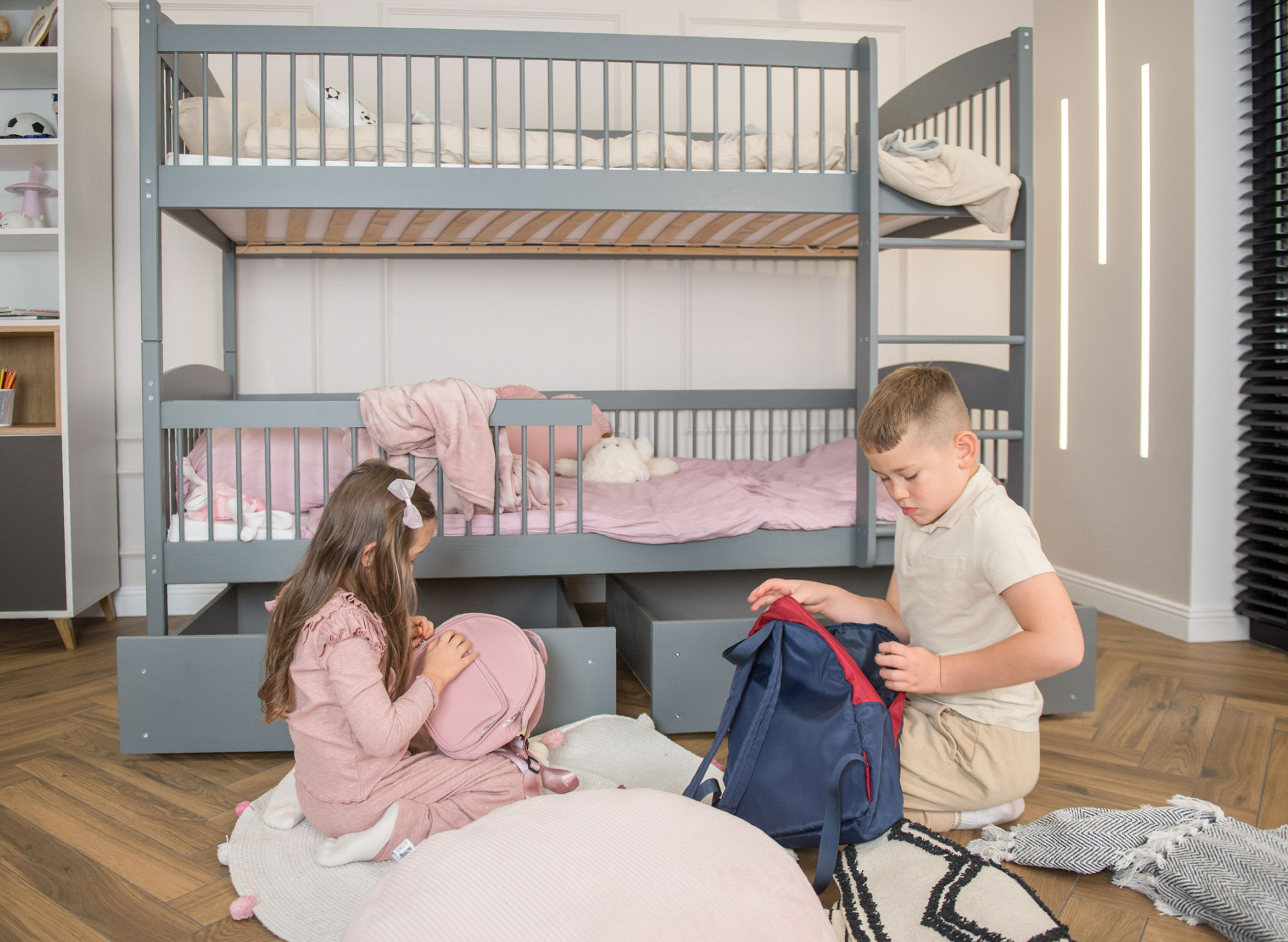 Dvě patra spánku a možnost úložného prostoru. Objevte všechny výhody sourozenecké postele LUNA 80x180 v grafitové barvě