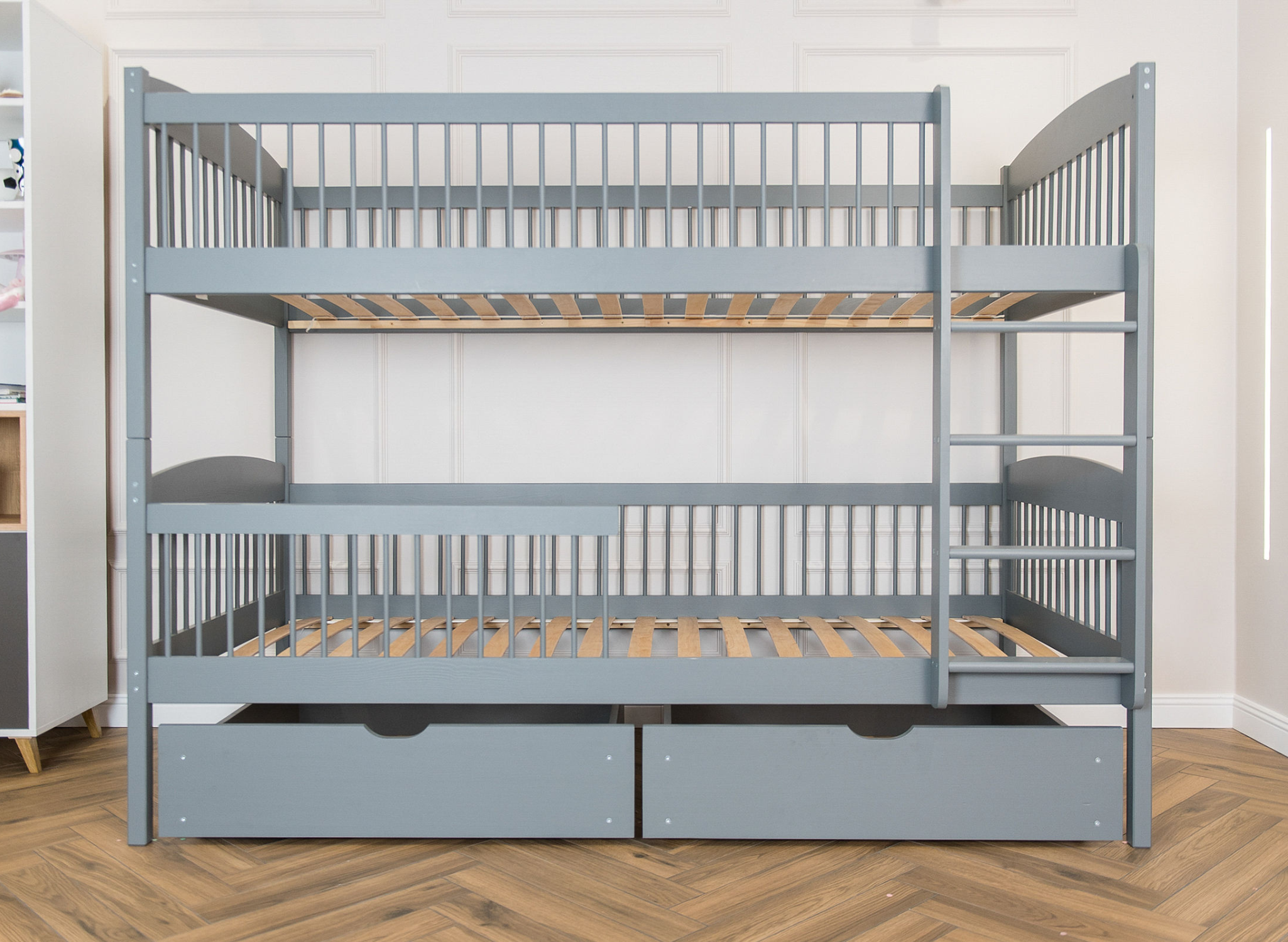 Multifunkční postel pro sourozence od Lano Meble je must-have dobře zařízené dětské ložnice. Disponuje dvěma patry na spaní, díky čemuž si zde každý z vašich malých objevitelů najde své místo. Navíc promyšlené zábrany s ozdobnými příčkami zaručují dítěti bezpečí během spánku. To však není vše, co jsme s dětskou postelí LUNA od Lano Meble vytvořili. Bez potíží tam uložíte lůžkoviny nebo hračky svých milovaných špuntů. Dopřejte svým ratolestem zdravý a klidný spánek. Vybavte jejich ložnici nejlepším modelem patrové postele pro sourozence LUNA, kde budou odpočívat, plnit si své sny a také rozvíjet svůj sourozenecký vztah.