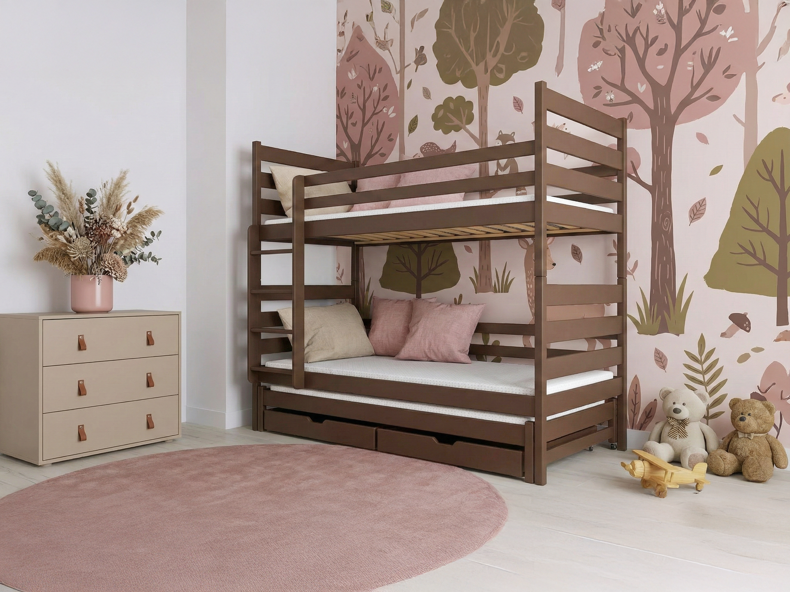 Patrová postel TOMI, hořká čokoláda – stvořeno pro klidné noci nejmenších