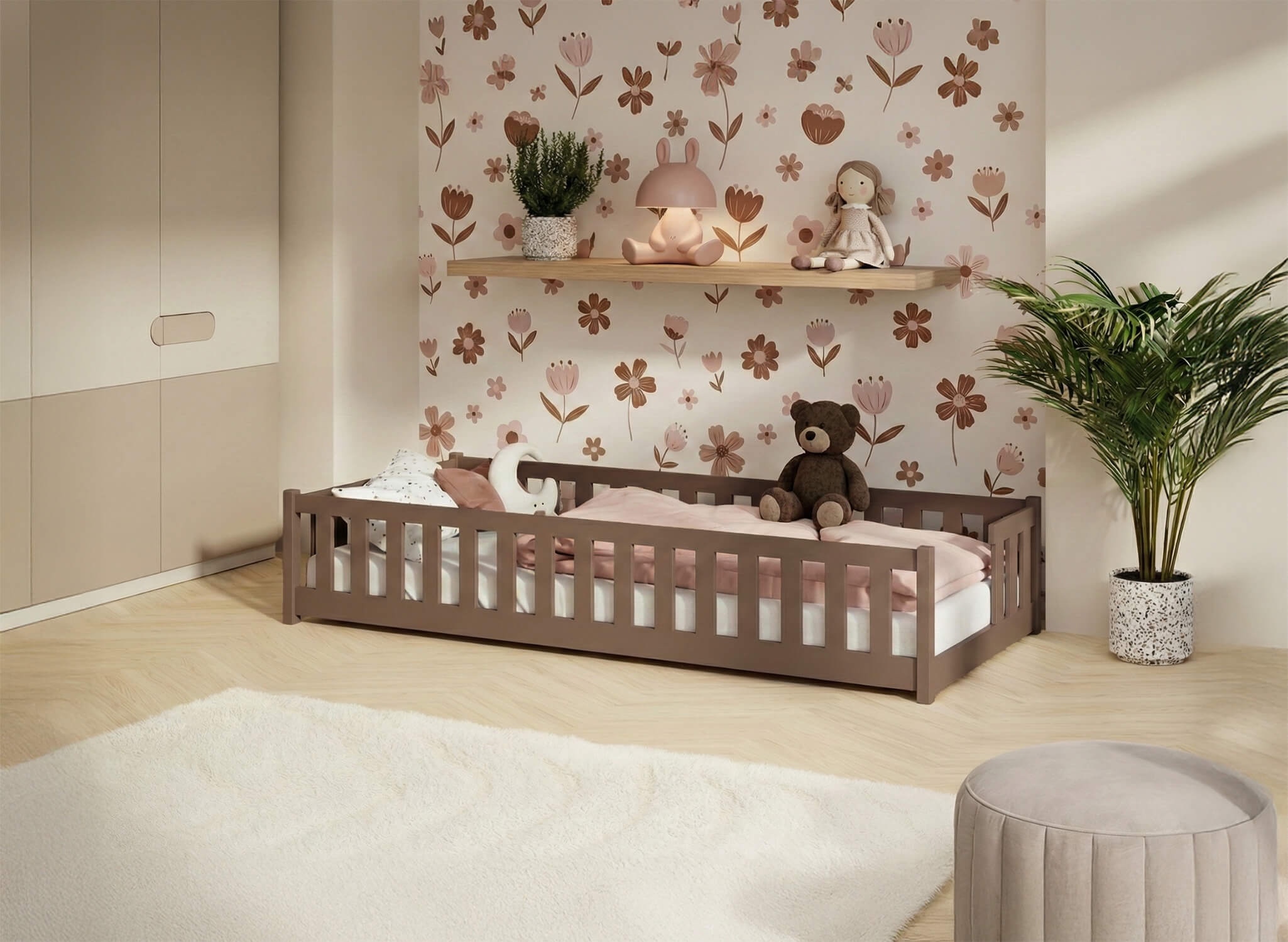 Maximální bezpečí v útulné verzi - postel ZOYA v barvě mléčné čokolády 80x200