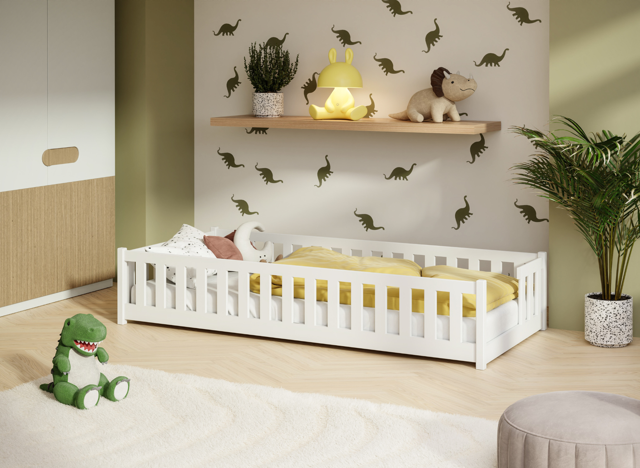 Dětská postel ZOYA 90X180 je model určený pro rodiče, kteří hledají kompromis mezi Montessori svobodou a naprostým bezpečím. Na rozdíl od standardních postelí nabízí ZOYA vestavěné zábrany na všech stranách . Nejedná se jen o obyčejnou zábranu – jde o promyšlený design, který vytváří útulnou zónu pro spaní a eliminuje riziko pádů v noci, a to i na nízké podlahy.