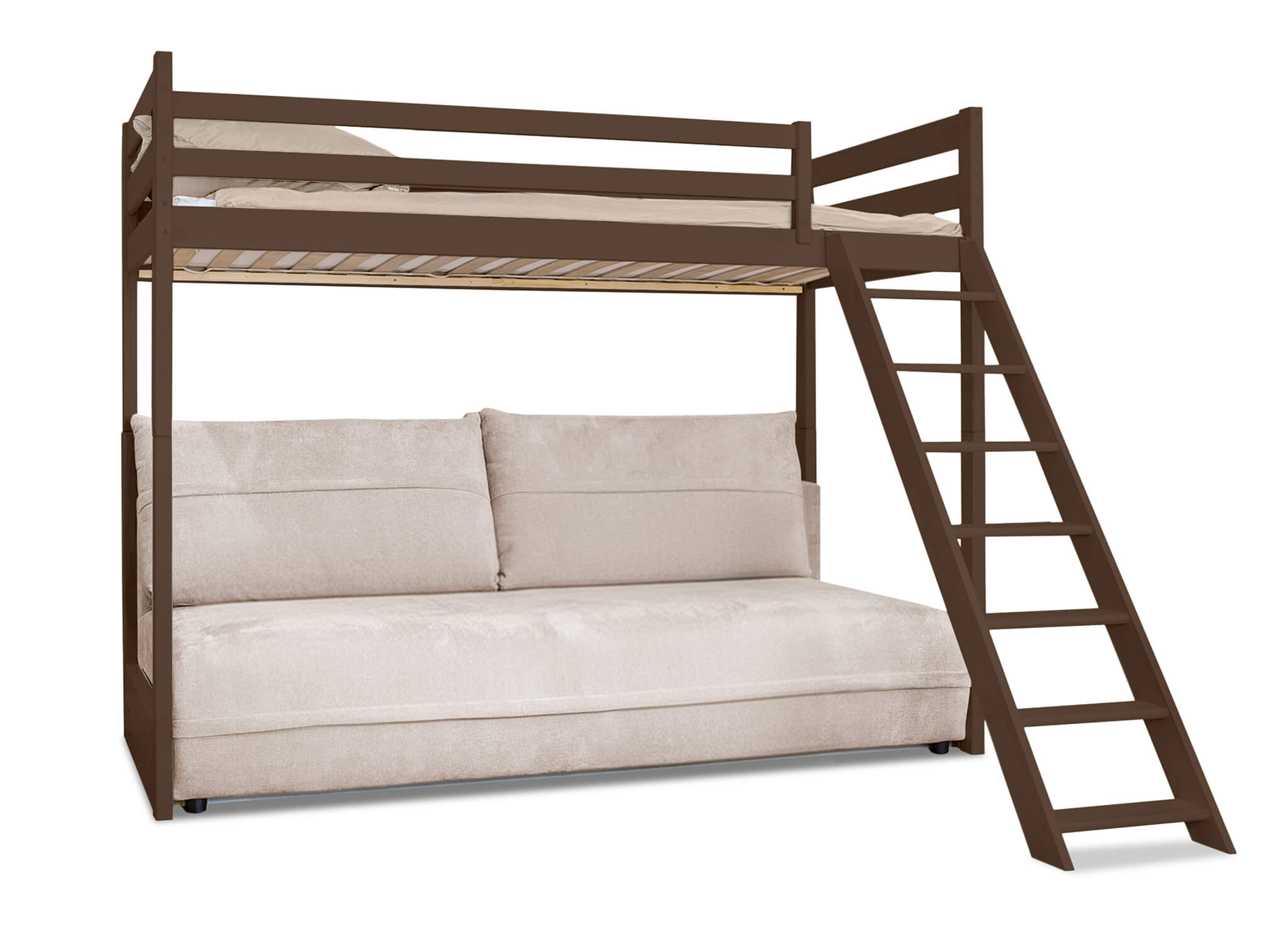 Patrová postel s pohovkou dole – SAVIO hořká čokoláda od Lano Meble