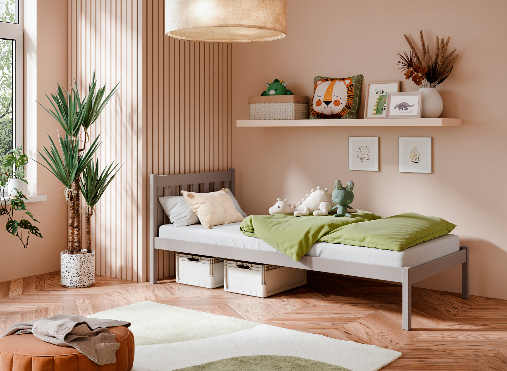 Postel 90x200 Martin spojuje eleganci a funkčnost, což ji činí ideální pro dětský a studentský pokoj. Kašmírový barva dodává interiéru lehkost a harmonii a skvěle ladí s přírodním stylem inspirovaným blízkostí přírody. Minimalistická, ale stylová konstrukce zajišťuje, že dětská postel zapadne jak do klasického, tak moderního uspořádání pokoje. Jednolůžková postel Martin je ideálním řešením pro starší dítě, které potřebuje prostor k odpočinku. Vysoké čelo postele plní jak dekorativní, tak praktickou funkci – poskytuje pohodlnou oporu například při čtení. Kašmírový dětská postel Martin je vyrobena z borovicového dřeva, což zaručuje trvanlivost a nadčasový vzhled. Další výhodou postele bez zásuvek je otevřený prostor, který zajišťuje volnou cirkulaci vzduchu a umožňuje ukládání věcí podle potřeb. Podívejte se, jak naše postel pro školáka udržuje lehkou formu a skvěle zapadá do estetiky studentského pokoje.