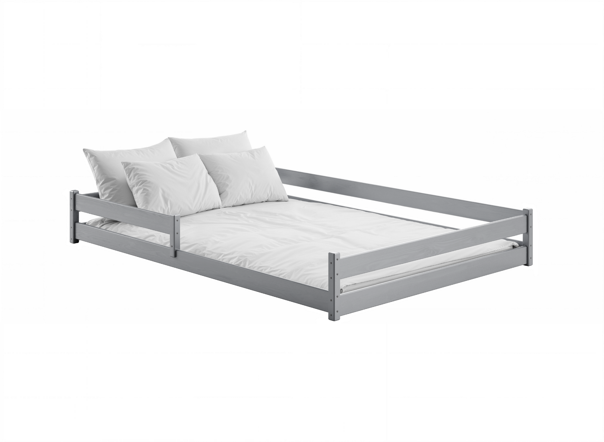 Přizpůsobte nízkou postel s ochrannými zábranami FINI 140x200 v šedé barvě dětskému pokoji a sledujte, jak se dítě stává samostatnějším