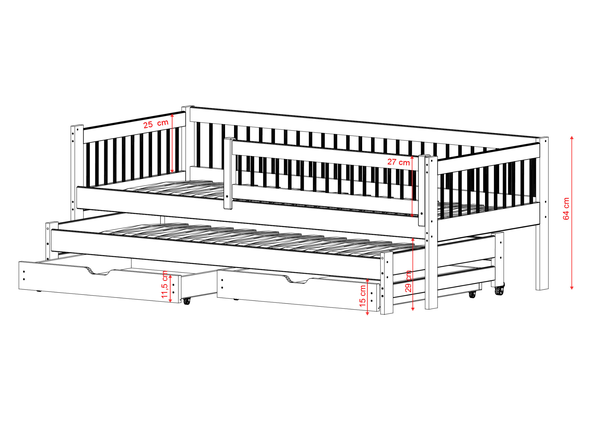 Dětská postel SOFTI je nábytek, který každý den vykouzlí úsměv na tváři vašeho dítěte. Stabilní konstrukce zajišťuje trvanlivost na mnoho let. Tajemstvím konstrukce je jednoduchá forma, která je vyrobena z borovicového dřeva. Navíc určitě oceníte univerzální design dětské postele SOFTI. Hodí se do každého uspořádání dětského pokoje a ke každému stylu. Nemusíte se obávat, že po rekonstrukci nebude ladit s ostatním vybavením. Nečekejte a využijte této skvělé nabídky Lano Meble už teď. V Lano Meble dbáme na to, aby naše produkty okouzlovaly nejen vzhledem, komfortem a funkčností, ale také bezpečností. Proto je dětská postel SOFTI vyrobena z vysoce kvalitního borovicového dřeva, pokrytého zdravotně nezávadným lakem. Dřevo je antistatické a nepřitahuje prach. Hrany postele a všechny kritické části jsou zaoblené, což eliminuje riziko odřenin. Třešničkou na dortu jsou ochranné zábrany, které chrání dítě před pádem z postele během spánku.
