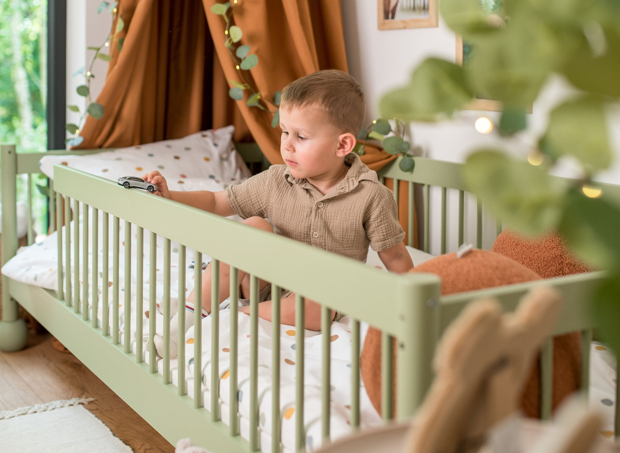 - Podpoře samostatnosti batolete – postel-ohrádka buduje v dítěti pocit aktivity a motivuje ho k samostatnému jednání.