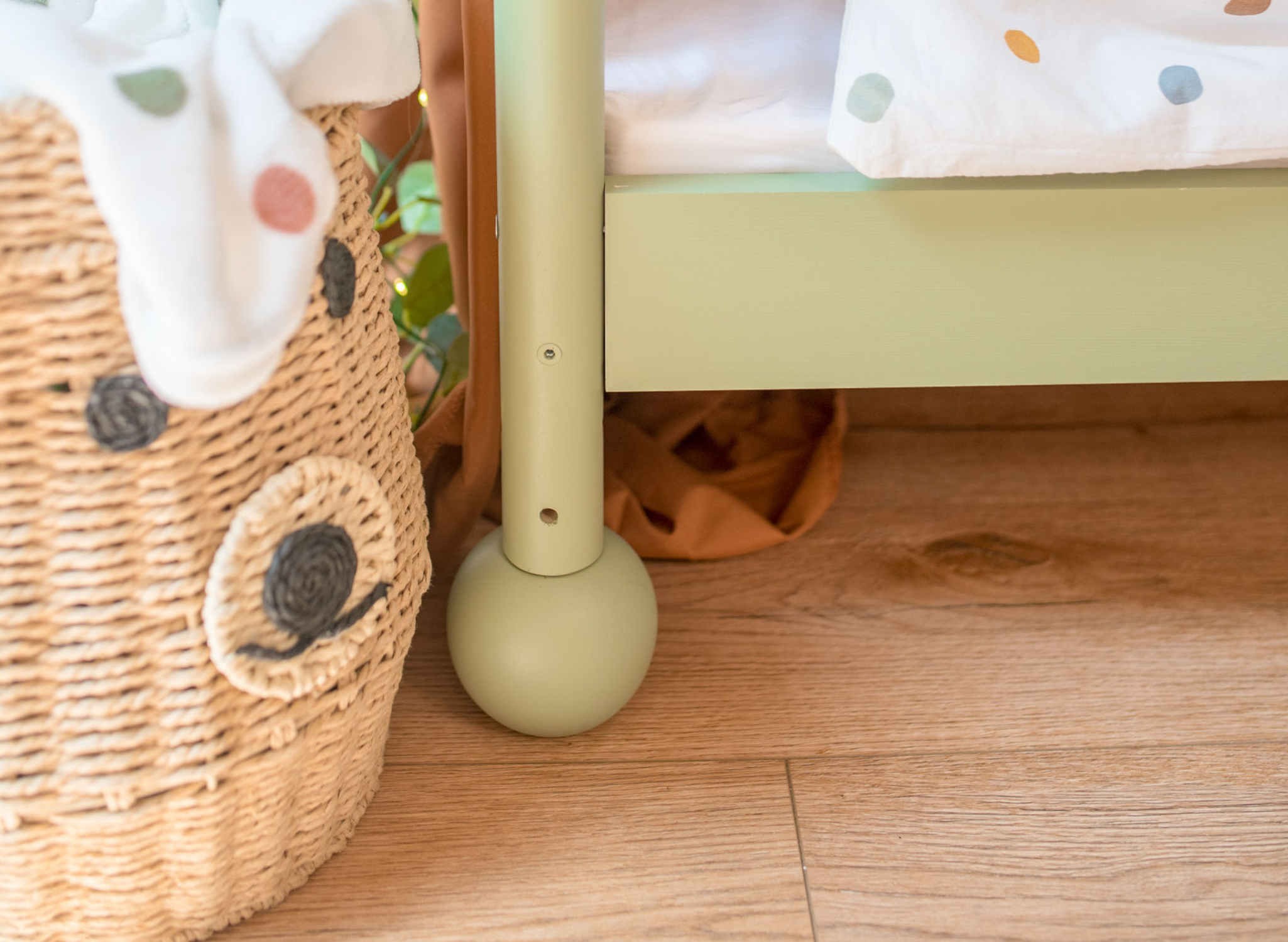 Zábrana s tyčkami, je poznávacím znamením postele STAR. Z jedné strany odpovídá za bezpečnost batolete, chrání ho před pádem, z druhé – určuje stylový vzhled nábytku. Moderní dřevěné tyčky jsou jiné než všechny ostatní: podívejte se jen na jejich zaoblený tvar! To díky němu se borovicová dětská postel dokonale cítí v současných aranžmá. Co víc, k nožičkám můžete přidat dekorativní a ultrajednoduché kuličky k montáži. Vezměte v úvahu také další vlastnosti tohoto modelu: